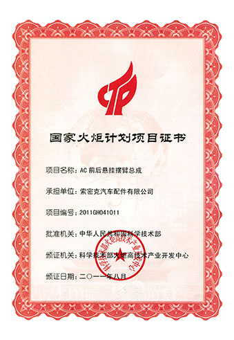 公司已先后通過IATF16949質量管理體系認證、ISO/14001環境管理體系認證和OHSAS18001職業健康安全管理體系認證。是“國家高新技術企業”“行業龍頭企業”和“全國百家優秀汽車零部件供應商”。